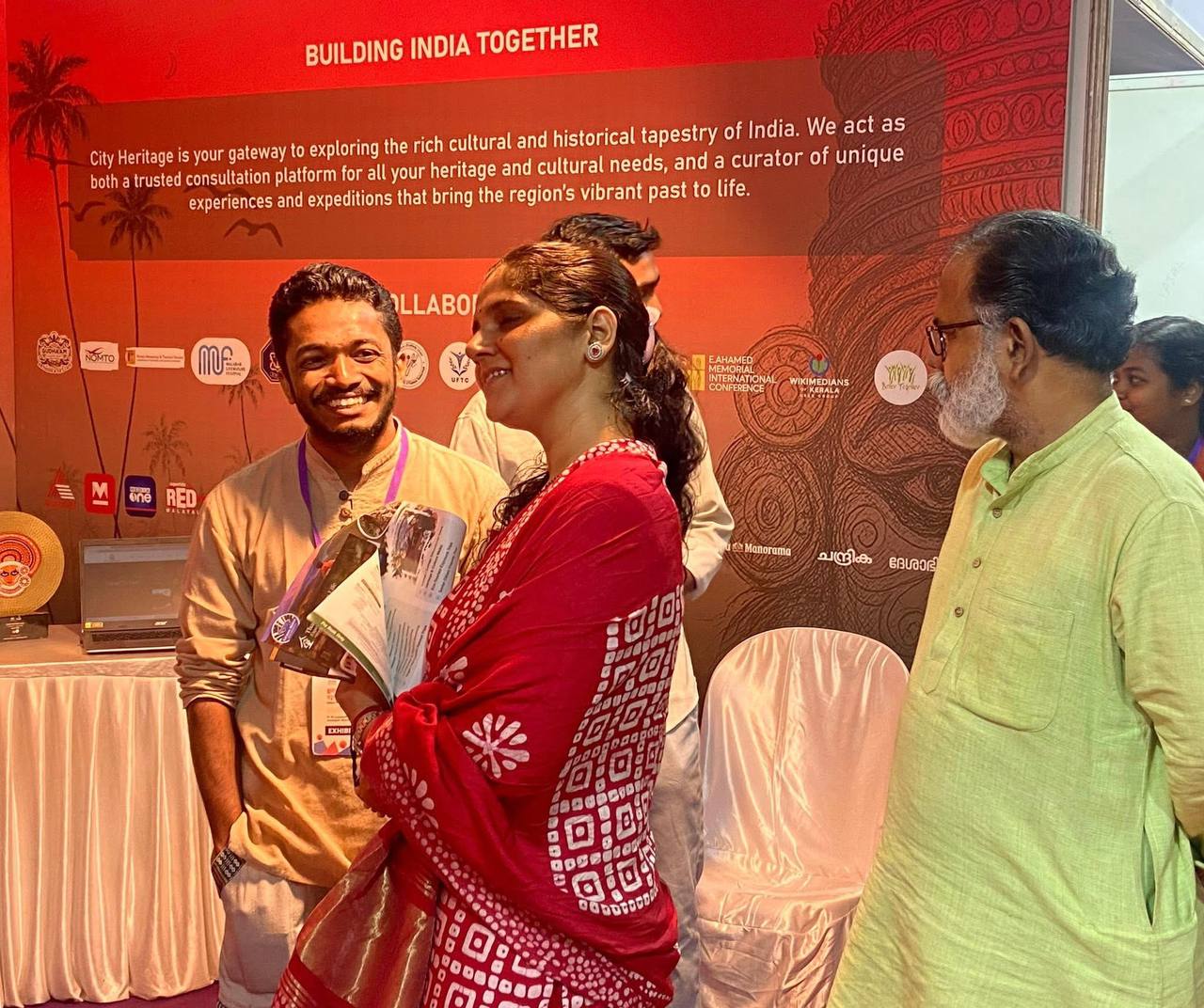One of the most heartfelt moments unfolded when the award-winning Anjarakandy Panchayat committee from Kannur — recognised as the best Responsible Tourism unit — visited the stall. Led by Panchayat President Seena, along with the standing committee members, the team stepped in with curiosity and quiet pride. Drawn towards the Theyyam display, they paused in reflection. For them, it was not merely an exhibit; it was a mirror to their own soil, rituals, and living traditions. As President Seena and her team listened to how City Heritage had once begun narrating stories from Kannur’s cultural landscape, the space seemed to hold a shared sense of belonging. The conversation flowed beyond formalities — touching upon ancestral shrines, community memories, and the evolving identity of their Panchayat. What began as a visit gradually transformed into a meaningful exchange rooted in mutual recognition. The Anjarakandy Panchayat team extended wholehearted support for collaborative efforts to further explore, document, and present the historical and cultural significance of their region. It was more than an official interaction; it was a reaffirmation that heritage thrives best when communities themselves become its custodians and storytellers.